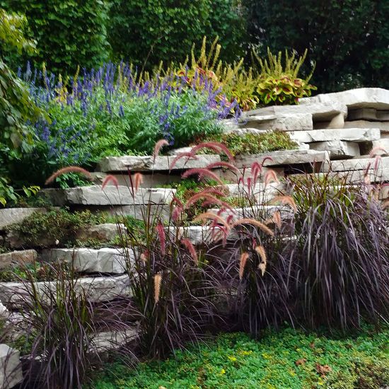 - Hardscapes, including retaining walls, patios, walkways, driveways, and natural stone work